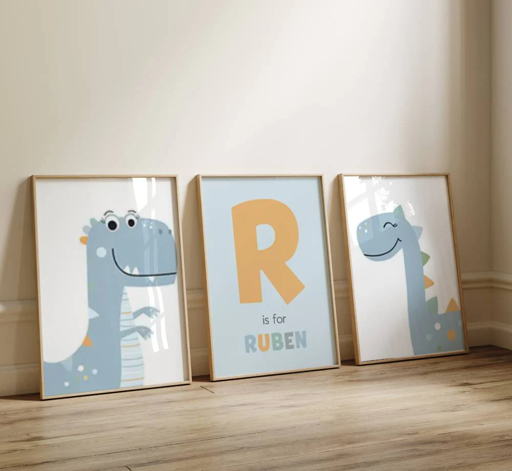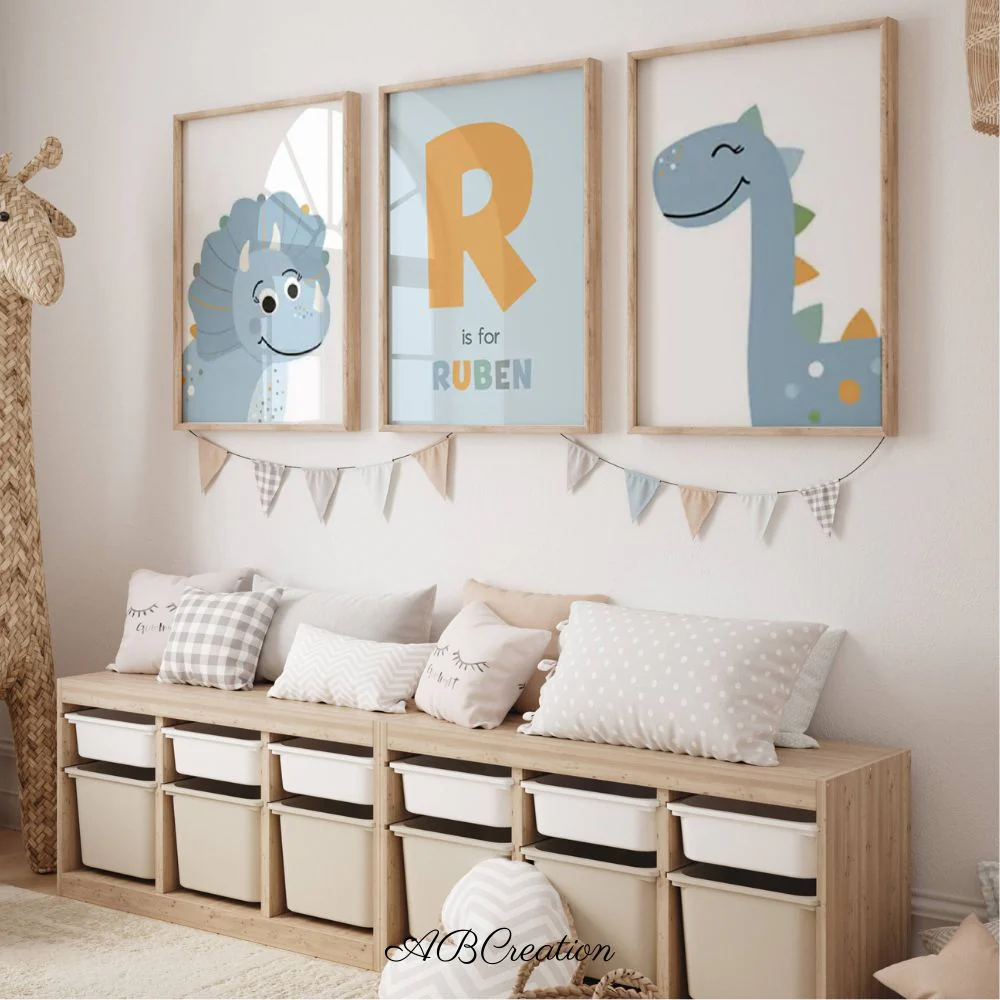 Décoration Chambre Enfant Dinosaure ! Possibilité de personnalisé avec le prénom, parfait pour un cadeau de naissance ou un anniversaire sur le thème des dinosaures Transformez la pièce en un préhistorique pour des rêves grandioses. Retourner à la collection d’affiche dinosaure : Cliquez ici