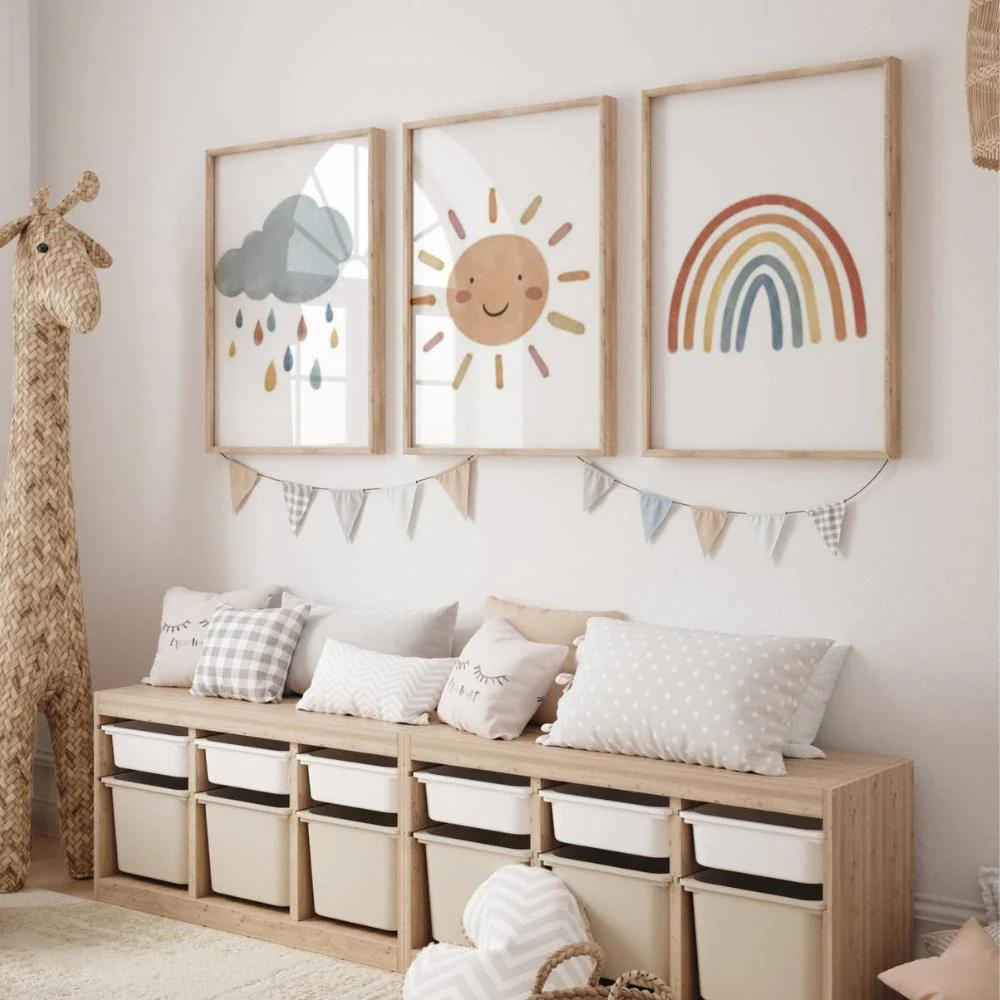 Chaque affiche thème ciel enfant est pensée pour créer un espace harmonieux, apaisant et rempli de tendresse. L’affiche nuage enfant, avec ses gouttes colorées, et l’arc-en-ciel chaleureux complètent parfaitement ce trio inspirant. Un choix décoratif parfait pour accompagner les premiers éveils et les jolis rêves.