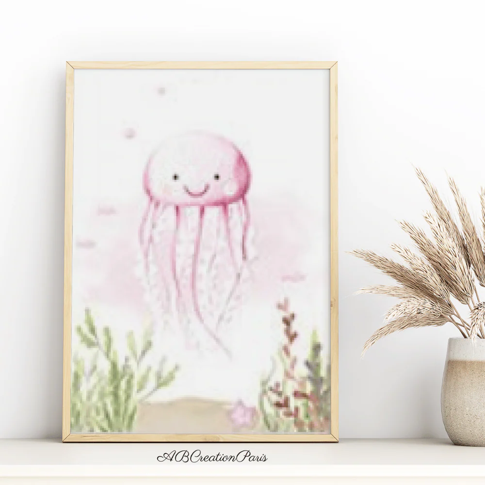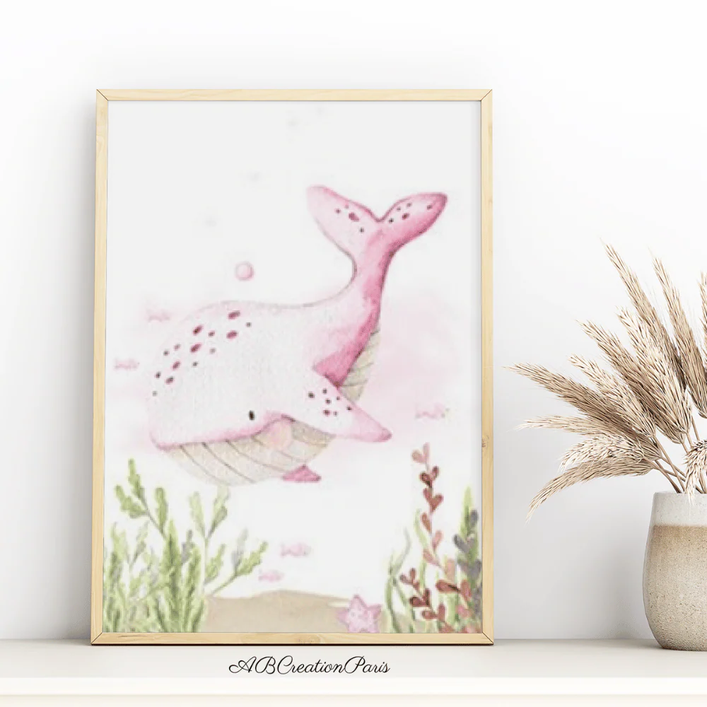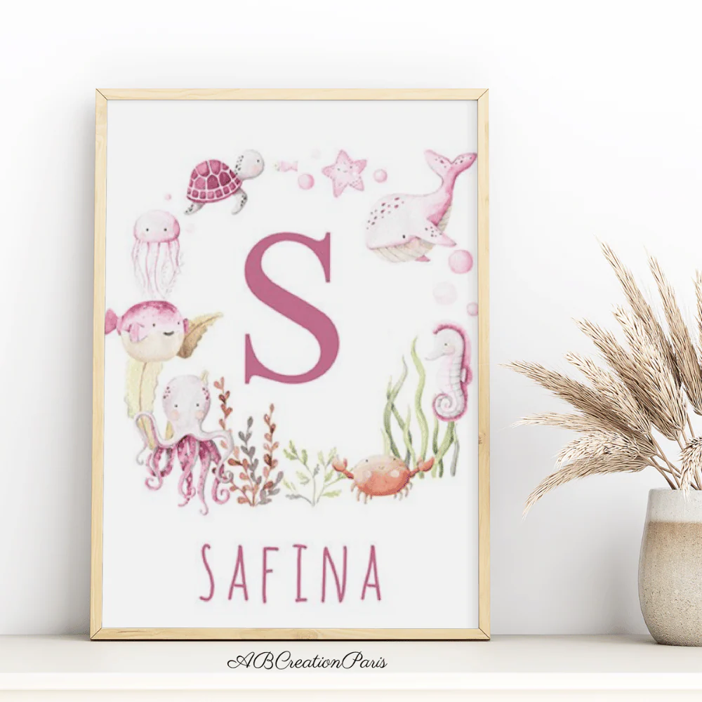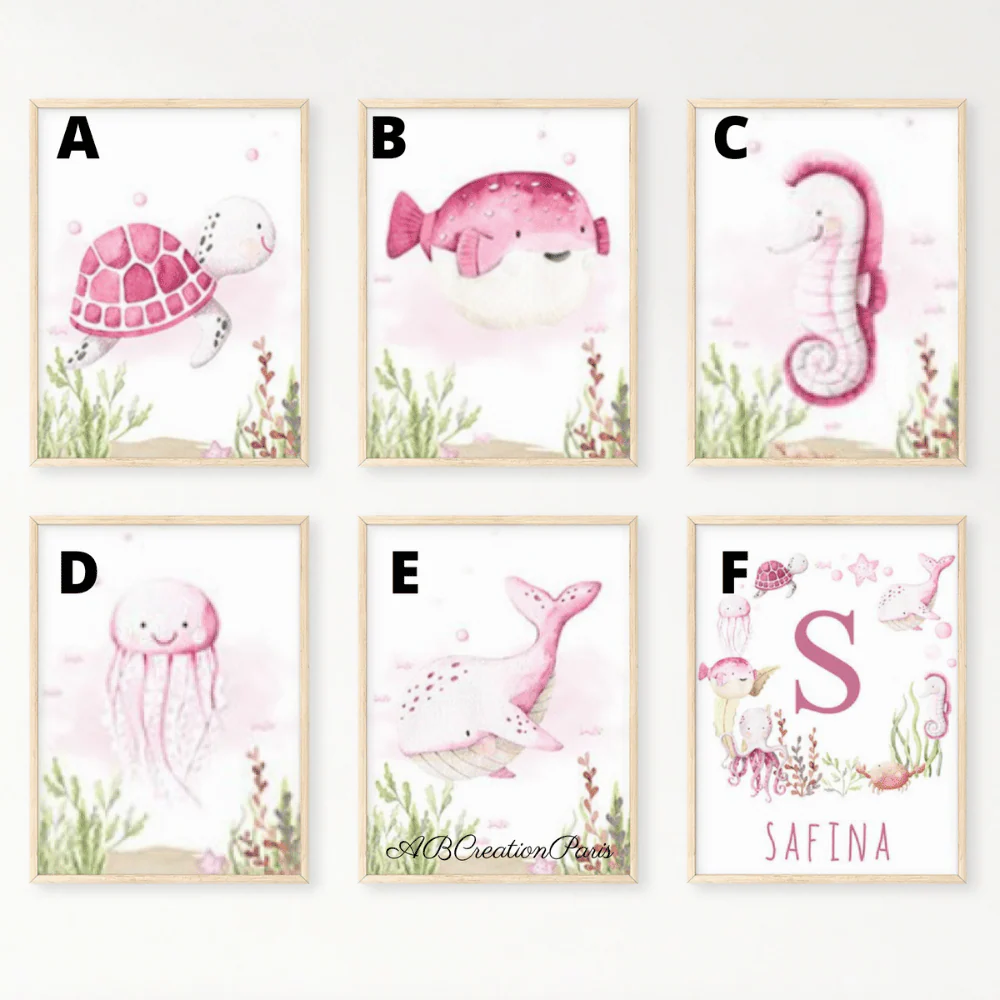 Transformez la chambre de votre petite fille en un véritable havre de paix avec l’affiche animaux marin rose. Idéale pour une chambre bébé fille thème marin, cette affiche décorative est conçue pour apporter une touche de douceur et d’évasion à l’univers de votre enfant. Disponible à l’unité, chaque affiche représente des animaux marins adorables, dont une baleine, qui apporteront une ambiance apaisante et éducative. Personnalisez l’une des affiches avec le prénom et l’initiale de votre enfant pour une décoration unique et personnelle, parfait pour encourager son intérêt pour le monde marin dès le plus jeune âge.
