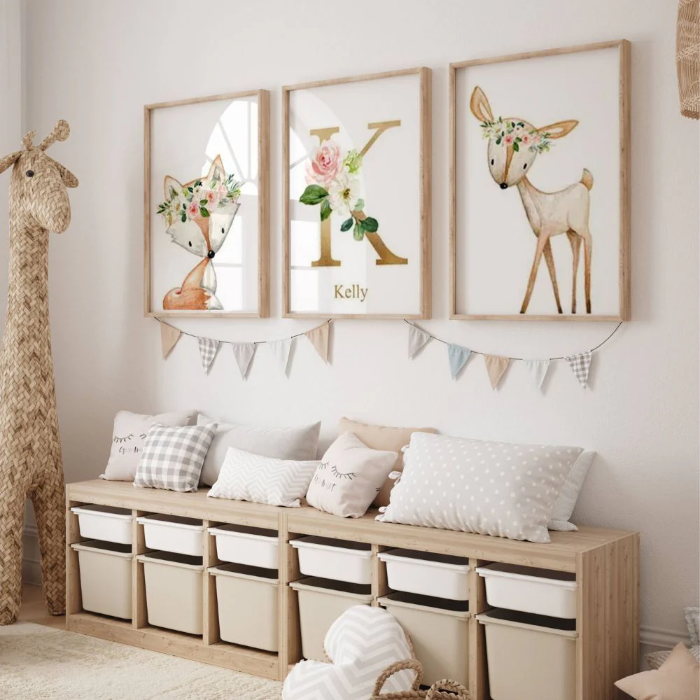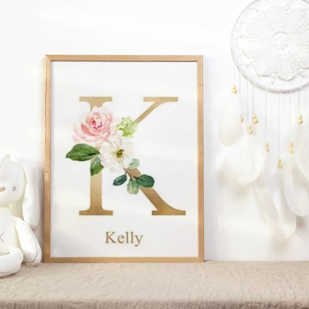★★ Sublimez la chambre de bébé facilement avec ce lot de 3 Affiches Personnalisées Bébé – Cadeau de Naissance- Initiale Prénom bébé / Décoration chambre Motif Fleur ★★