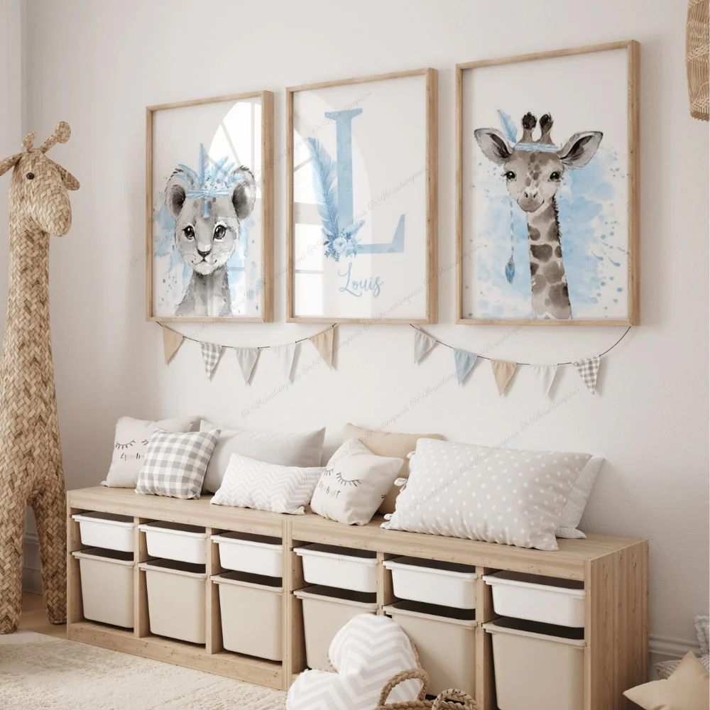 Décoration Chambre Enfant Bleu – Thème Animaux Savane