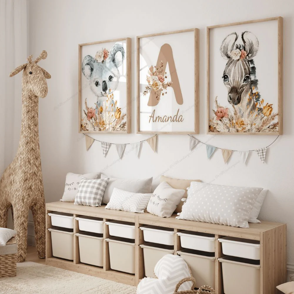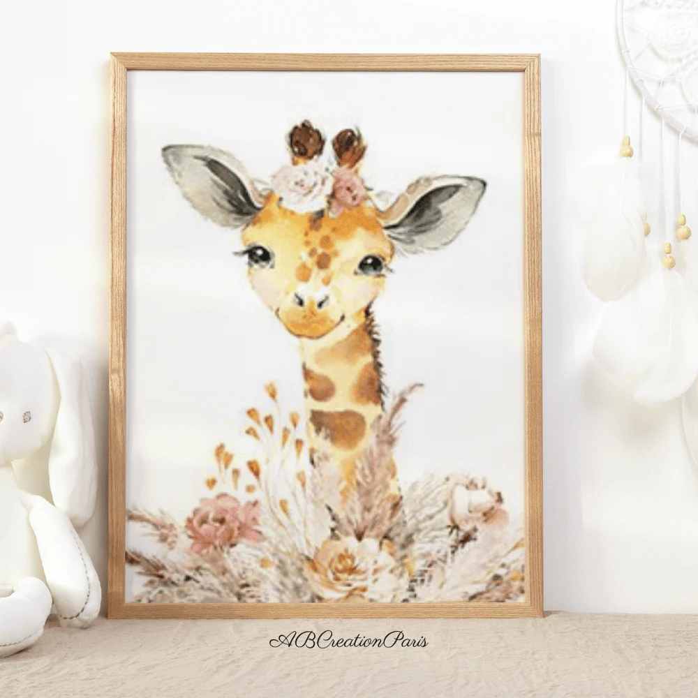 Décorer la chambre de bebe en ajoutant un visuel sur le thème des animaux de la savane. Le fond beige apporte douceur et harmonie Une nouveau-né dans votre entourage? Faites-lui un cadeau de naissance unique et original. Un univers propre à lui, cela éveillera ses sens !