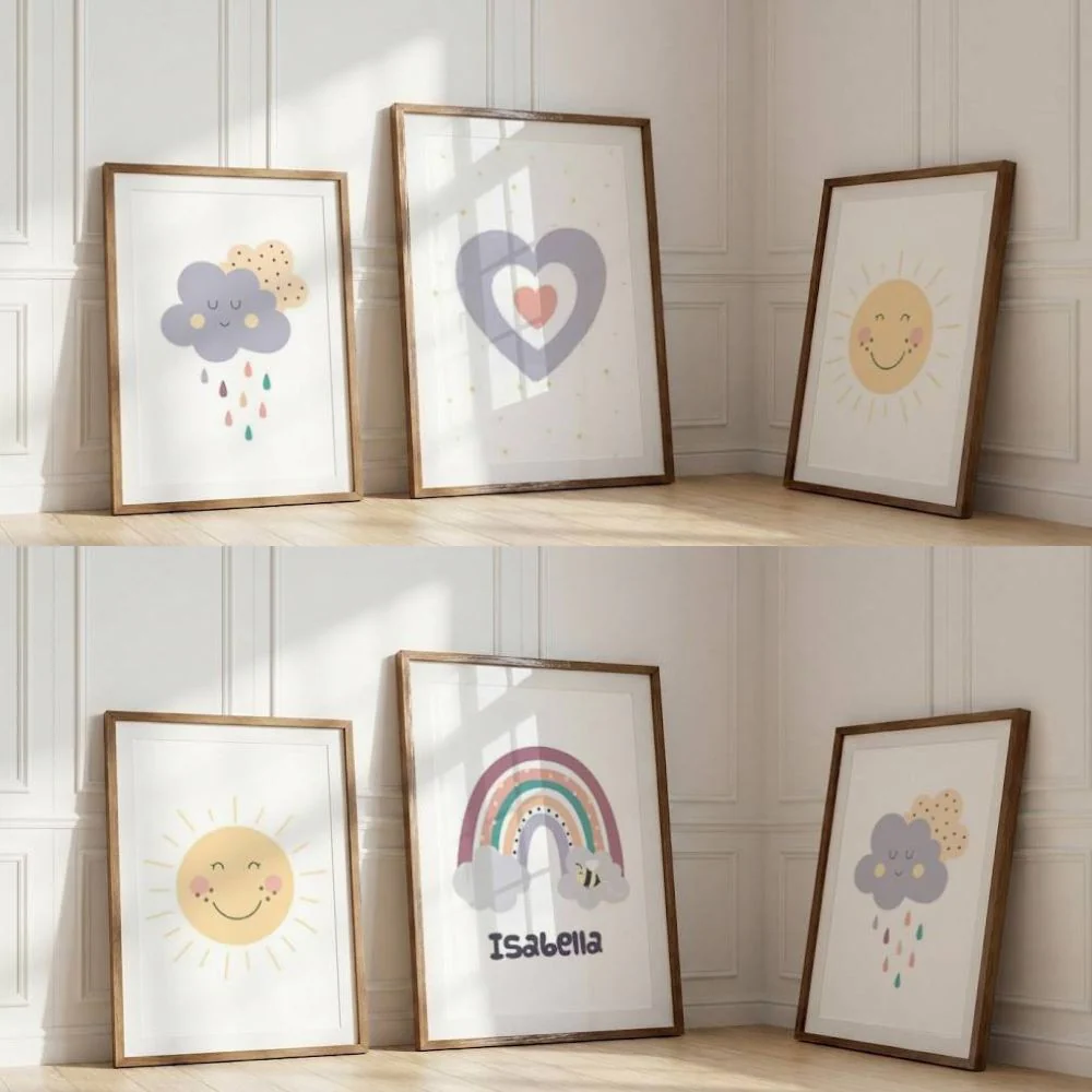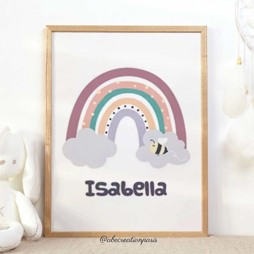 Que ce soit pour un cadeau de naissance ou pour décorer une chambre d’enfant, ce cadeau personnalisé pour bébé offre une touche originale et douce. Les couleurs pastel et les illustrations tendres apportent une atmosphère sereine, parfaite pour une décoration murale qui évoluera avec votre enfant.