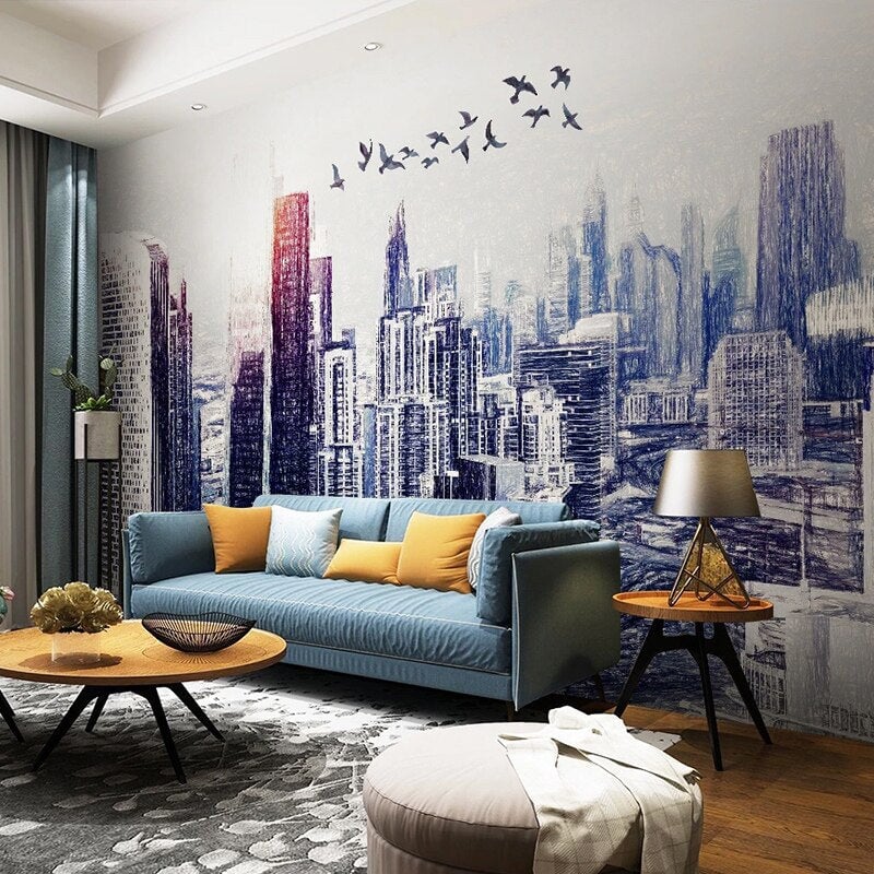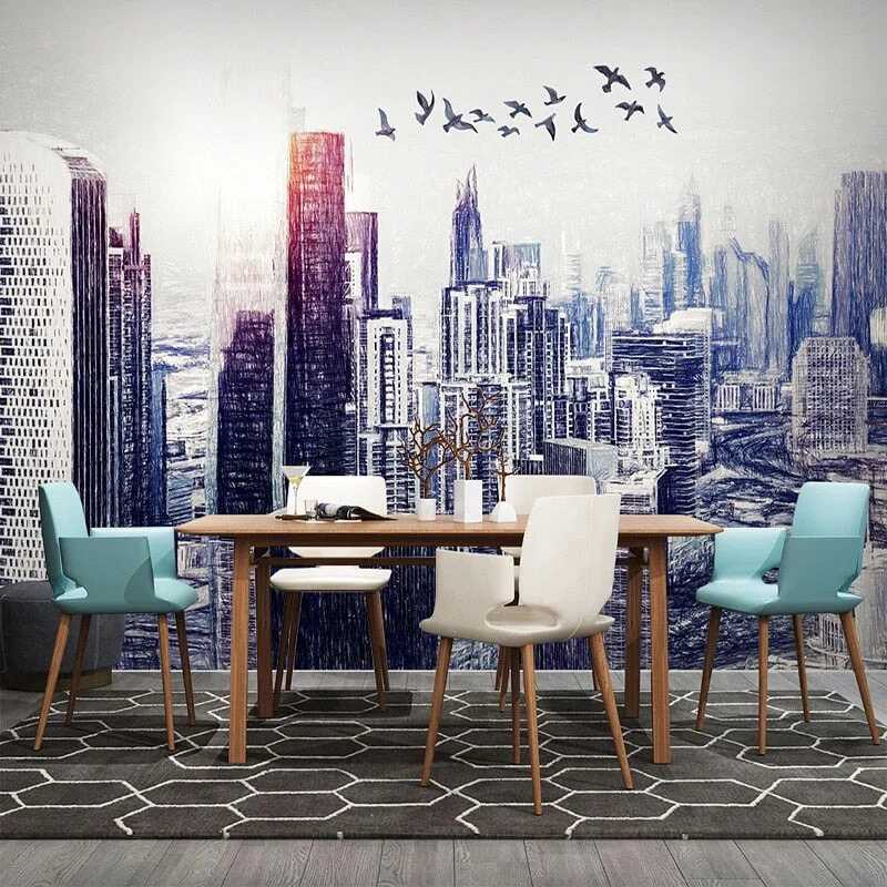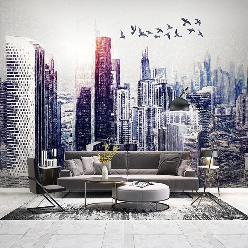 PAPIER PEINT BUILDING POUR TAPISSER LES MURS DE CHAMBRE DE VOTRE ADOLESCENT OU POUR VOTRE ESPACE. OPTEZ POUR CE STYLE COUP DE CRAYON UNIQUE ET STYLE.