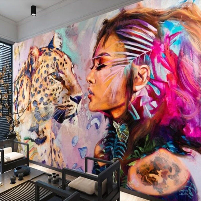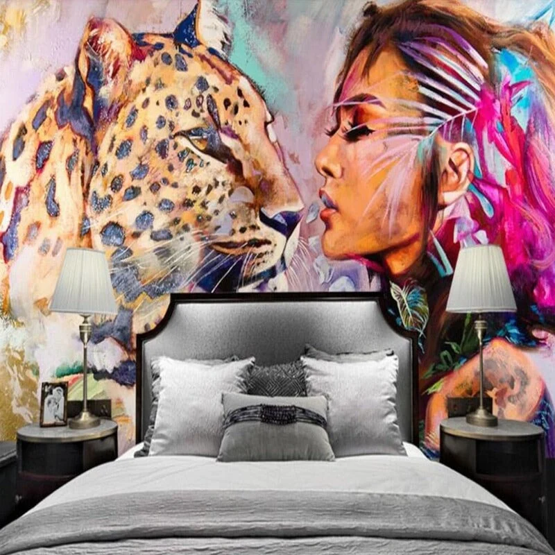 PAPIER PEINT CHAMBRE D’ADO AVEC LEOPARD ET STYLE SAUVAGE POUR FILLE OU AVENTURIERE. CREEZ UNE DECO UNIQUE ET PERSONNALISEZ VOTRE ESPACE SELON VOS ENVIES.