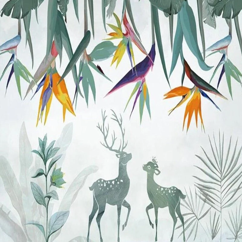 PAPIER PEINT CHAMBRE D’ADO FILLE AVEC UN DESIGN STYLE TROPICAL ET NORDIQUE POUR APPORTER DU CACHET ET UN CHARME CERTAIN SUR LES MURS.