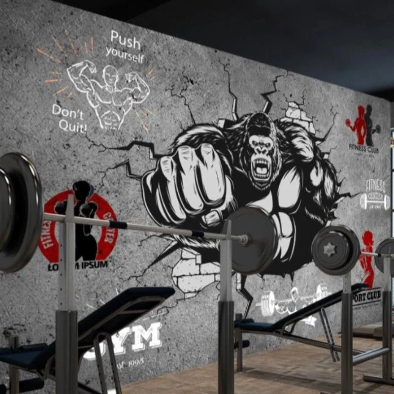 IMPOSEZ UN TON PUISSANT DANS VOTRE SALLE DE SPORT AVEC NOTRE PAPIER PEINT HAUT DE GAMME ILLUSTRANT UN GORILLE-HOMME MUSCLÉ. FRAPPANT LE MUR AVEC UNE FORCE BRUTE, CE DESIGN ÉVOQUE L’EFFORT INTENSE ET LA PUISSANCE. L’IMAGE, SAISISSANTE, DÉPEINT UNE MUSCULATURE IMPRESSIONNANTE QUI INSPIRE LA DÉTERMINATION. CE PAPIER PEINT, ISSU DE NOTRE COLLECTION SPORTIVE, MET EN AVANT LE THÈME DE LA MUSCULATION. POUR UNE DÉCORATION MURALE ORIGINALE QUI POUSSE À REPOUSSER VOS LIMITES, OPTEZ POUR CE PAPIER PEINT AUDACIEUX, TRANSFORMANT VOTRE ESPACE EN UNE VÉRITABLE JUNGLE URBAINE DE FITNESS.