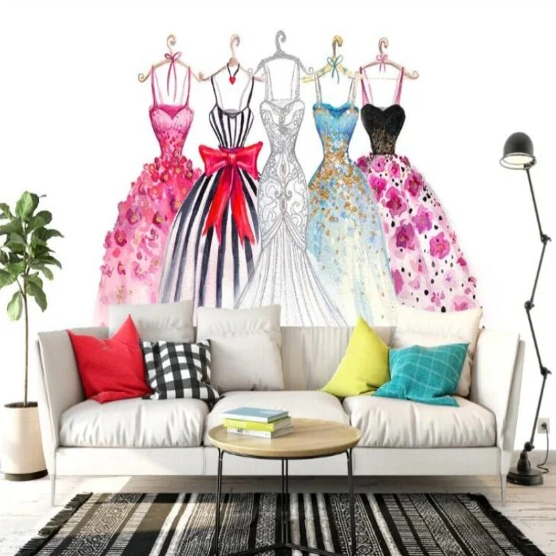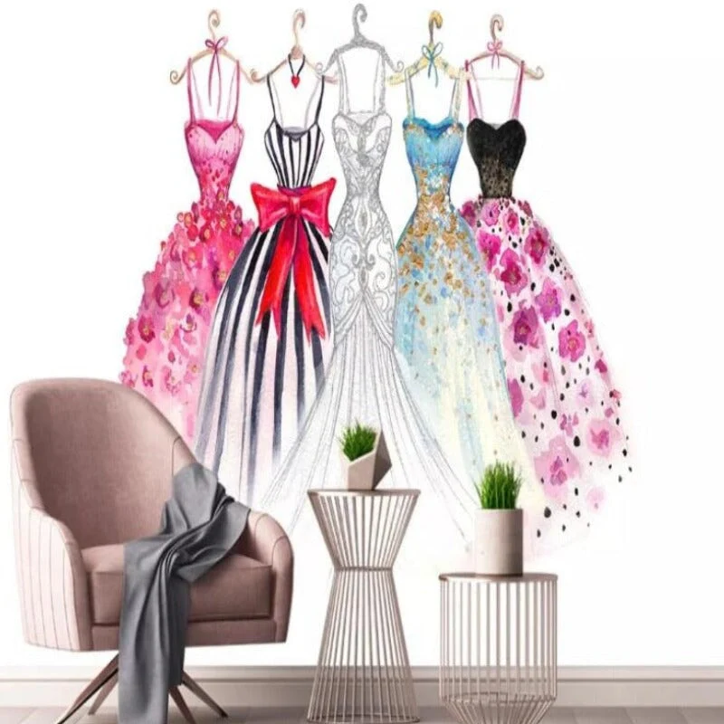 SUBLIME PAPIER PEINT ROBES DE CREATEUR POUR CHAMBRE FILLE ADO. OPTEZ POUR LA DECO MODERNE ET PERSONNALISEE. INSPIREZ VOUS DE LA MODE ET DE SES PROJECTIONS SOMPTUEUSES.