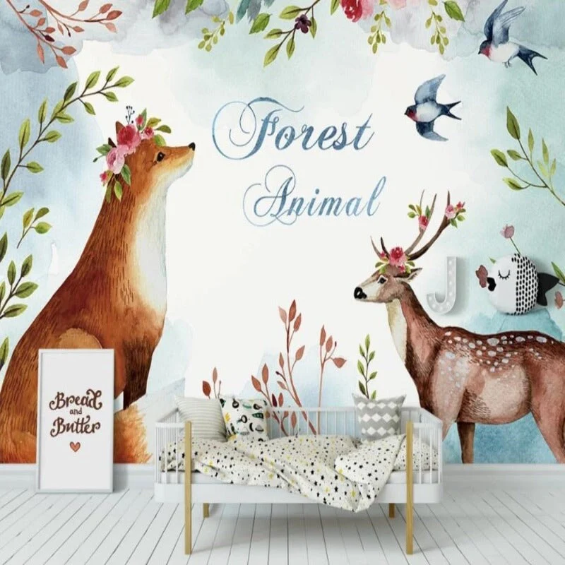 PAPIER PEINT AVEC RENARD POUR HABILLER LES MURS DE CHAMBRE DE VOTRE ENFANT. DES MOTIFS FLORAUX ET UN EFFET AQUARELLE POUR APPORTER DU CHIC ET DE LA DOUCEUR. COTE CHAMPETRE POUR L’AUTHENTICITE, CREEZ UNE BELLE AMBIANCE DECORATIVE DANS SA CHAMBRE A COUCHER.