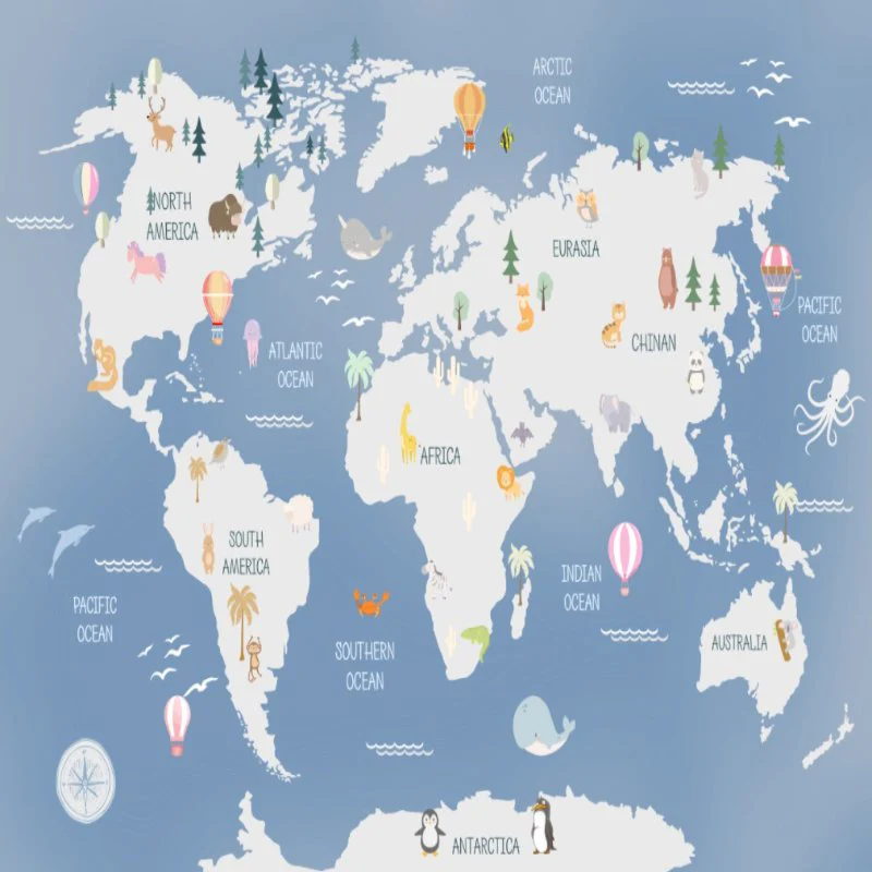 PAPIER PEINT MAPPEMONDE SUR MESURE, VOUS POUVEZ CHOISIR LA TAILLE SELON VOTRE MUR OU SELON LES TAILLES STANDARDS DISPONIBLES. BEL EFFET DECORATIF POUR CHAMBRE ENFANT FILLE OU GARCON.
