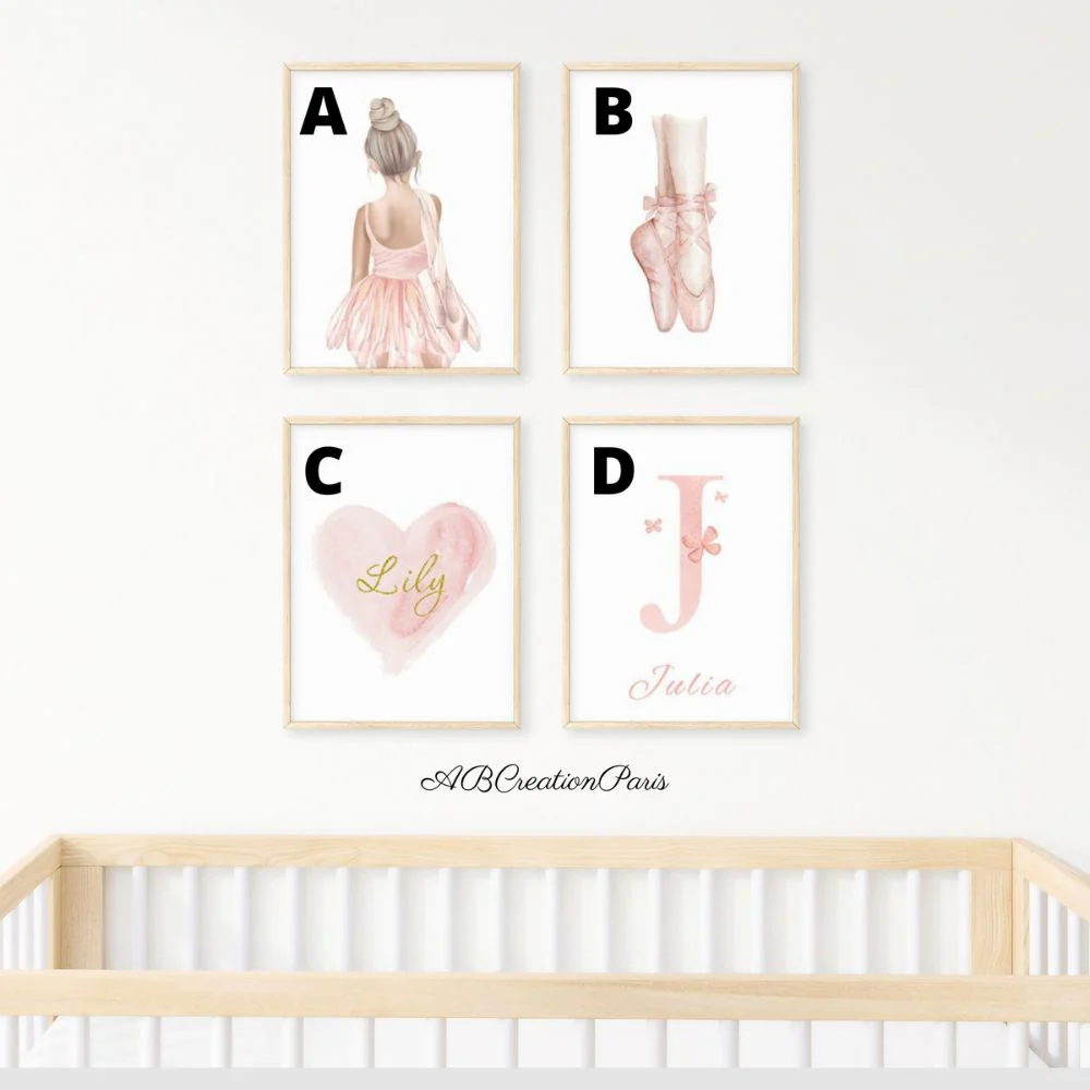 La personnalisation de votre set d’affiches danseuse ballerine est simple. Lors de votre commande, indiquez le prénom de votre enfant dans l’espace prévu à cet effet. Je me charge du reste, veillant à ce que chaque détail reflète vos attentes pour une décoration chambre enfant fille parfaite.