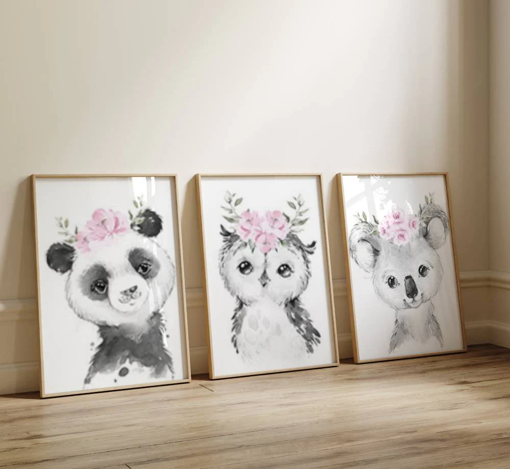 Décorer la chambre de bebe en ajoutant un visuel sur le thème des animaux de la Jungle. Composer votre lot de 3 affiches avec pour choix le lion, l’éléphant, la girafe, le zèbre et pleins d’autres animaux ! ★★