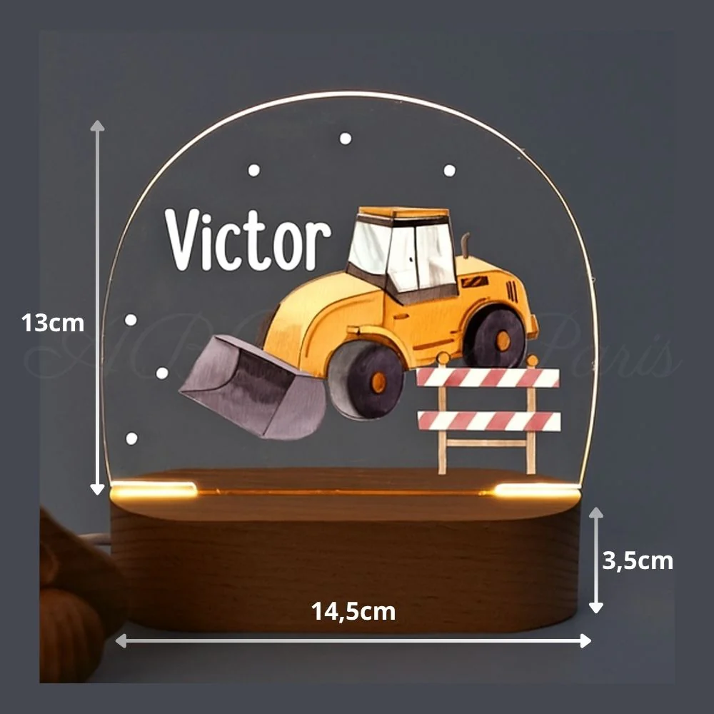 Embellissez la chambre de votre enfant avec cette veilleuse chantier personnalisée
